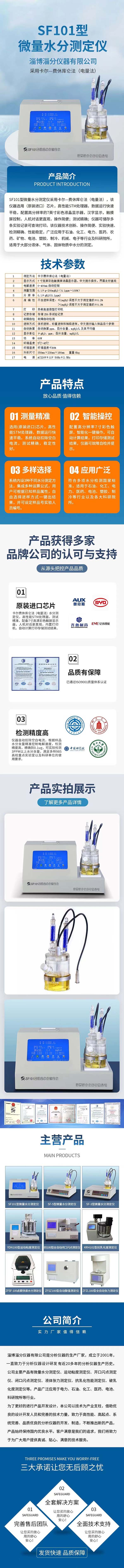 SF101型微量水分測定儀采用卡爾—費休庫侖法(電量法),選用原裝進口芯片,配置高性能STM處理器,快速處理測量信號,更精準計算檢測數據,該儀器配備7寸高清彩色觸屏顯示器,漢字顯示,人機對話更直觀,操作簡便;測試精準;獨有的三種進樣方式,可根據樣品已知參數,例如密度,重量或者樣品需要稀釋后進樣等情況自由選擇檢測方式,儀器內置熱敏打印機可自動計算存儲打印測試結果,方便用戶更快捷檢測樣品水分含量。該儀器檢測精準、操作簡便、實驗快速、性能穩定,廣泛應用于石油、化工、電力、醫藥、農藥、礦物、電池、塑膠、制冷、機械、電子等行業及科研院所。適用于大部分液體、氣體、固體物質中水分的測定,是水分測定領域的理想選擇。